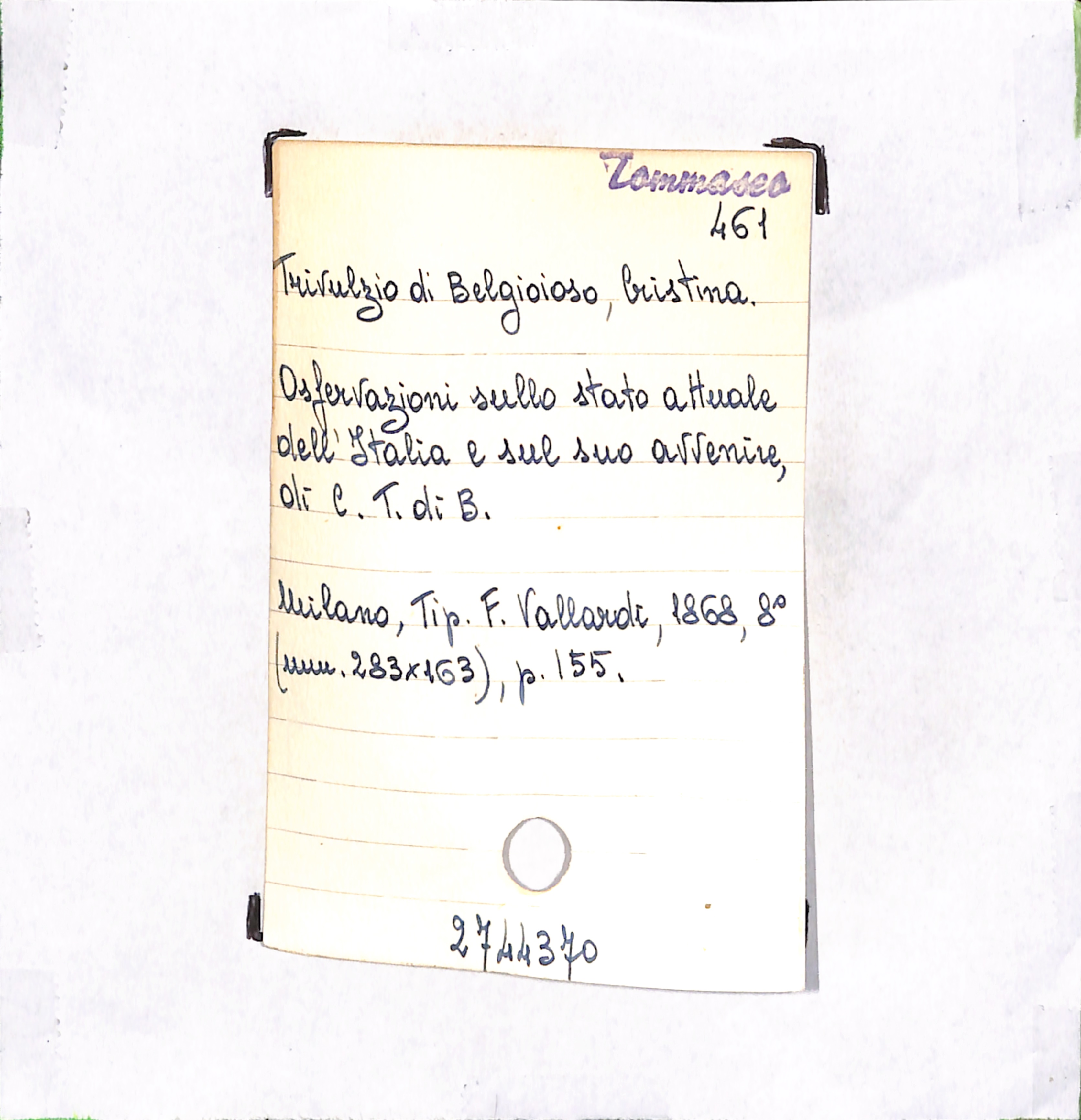 U.D. monografia Osservazioni sullo stato attuale dell'Italia e sul suo avvenire, di C. T. di B.