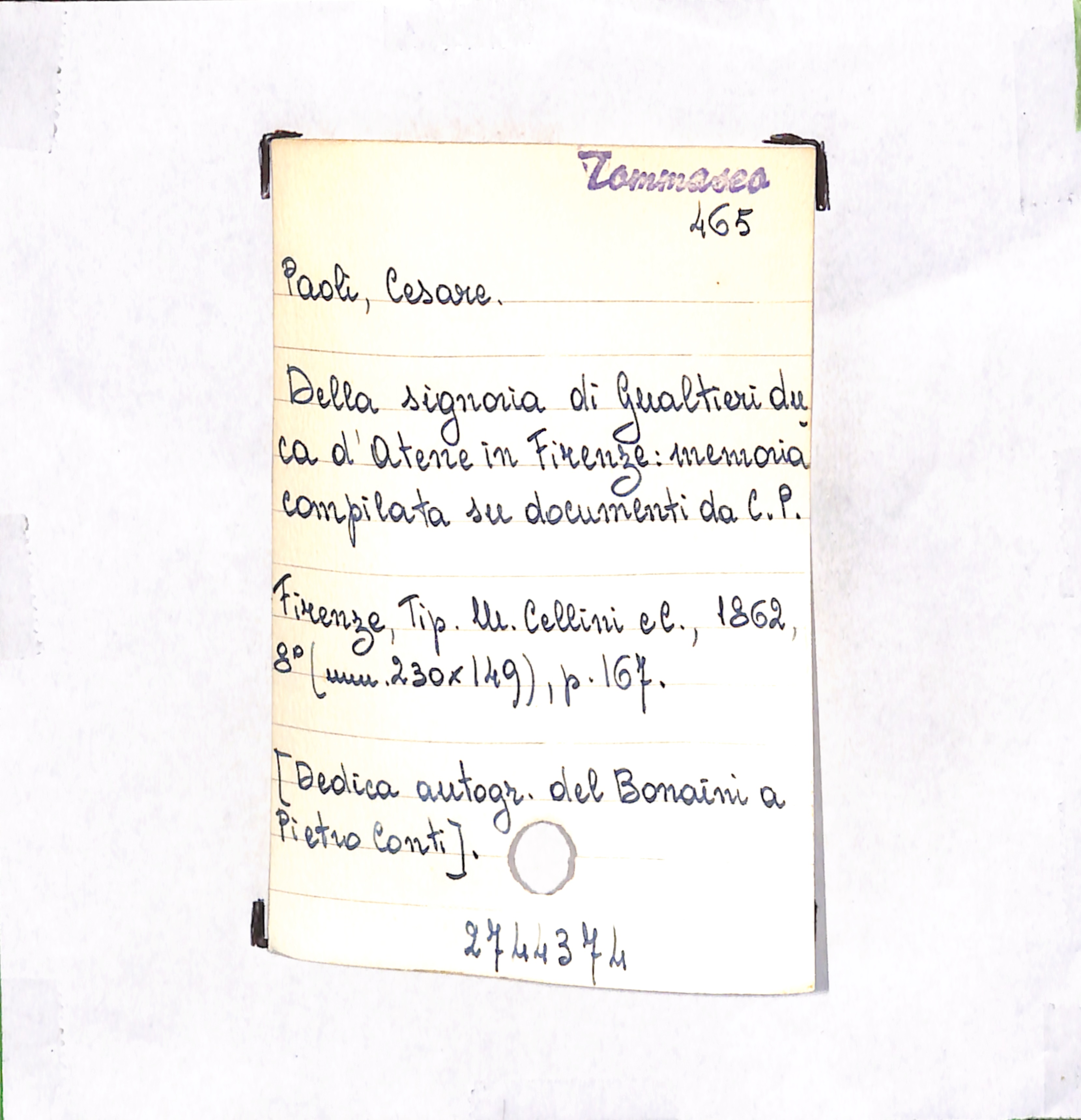 • [Dedica autogr. del Bonaini a Pietro Conti].