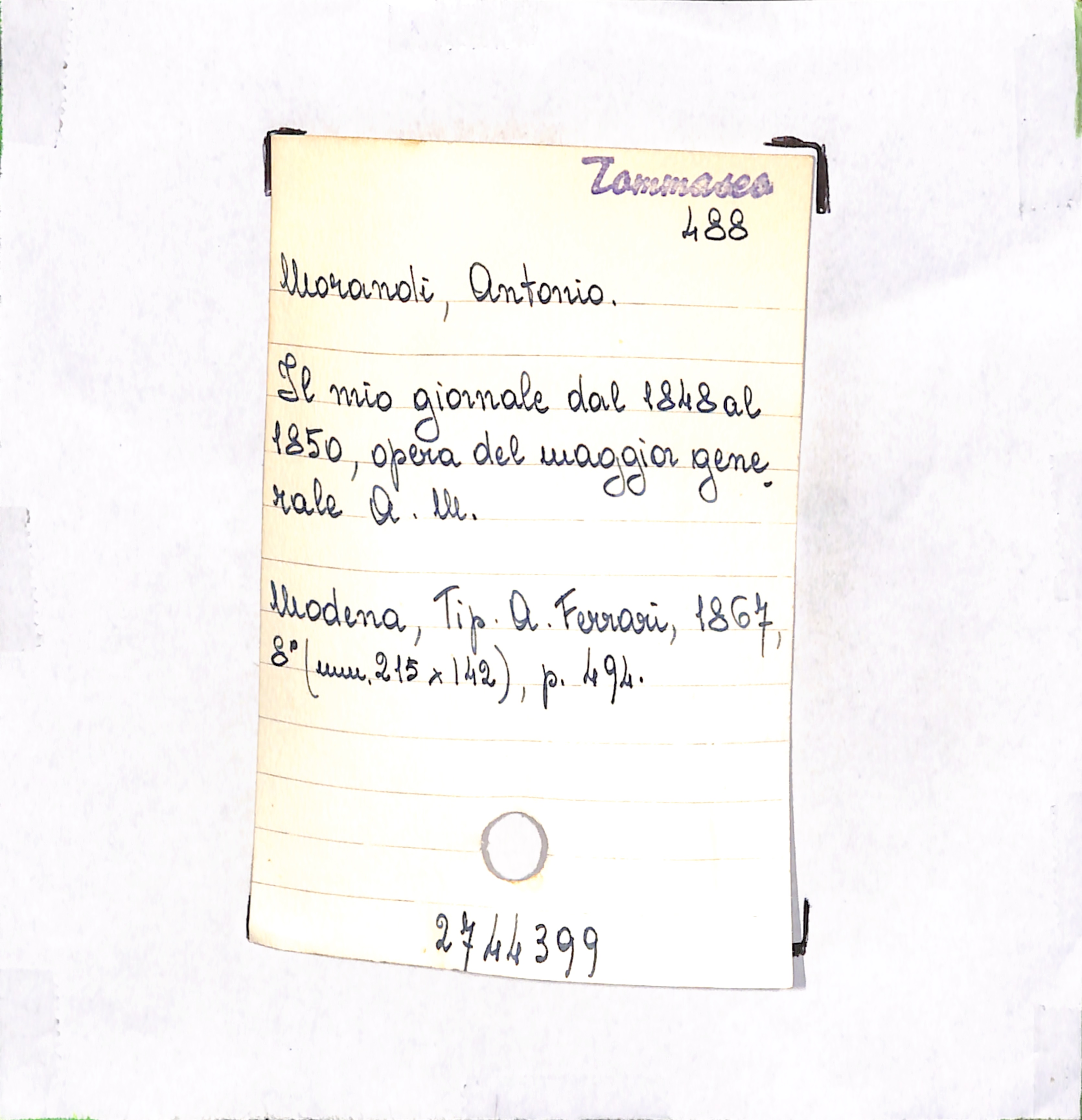 U.D. monografia Il mio giornale dal 1848 al 1850, opera generale A. M.