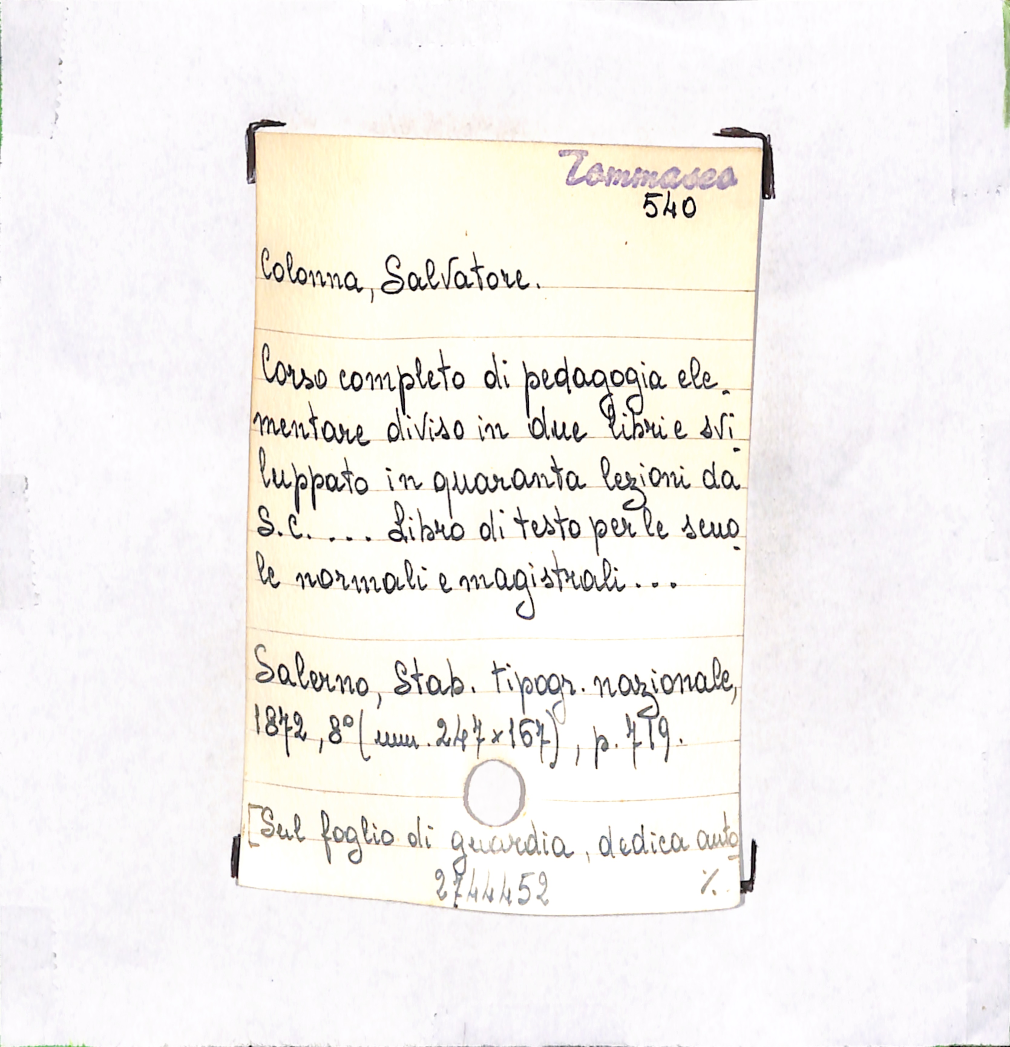 • [Sul foglio di guardia, dedica autografa dell'A. a N. Tommaseo].