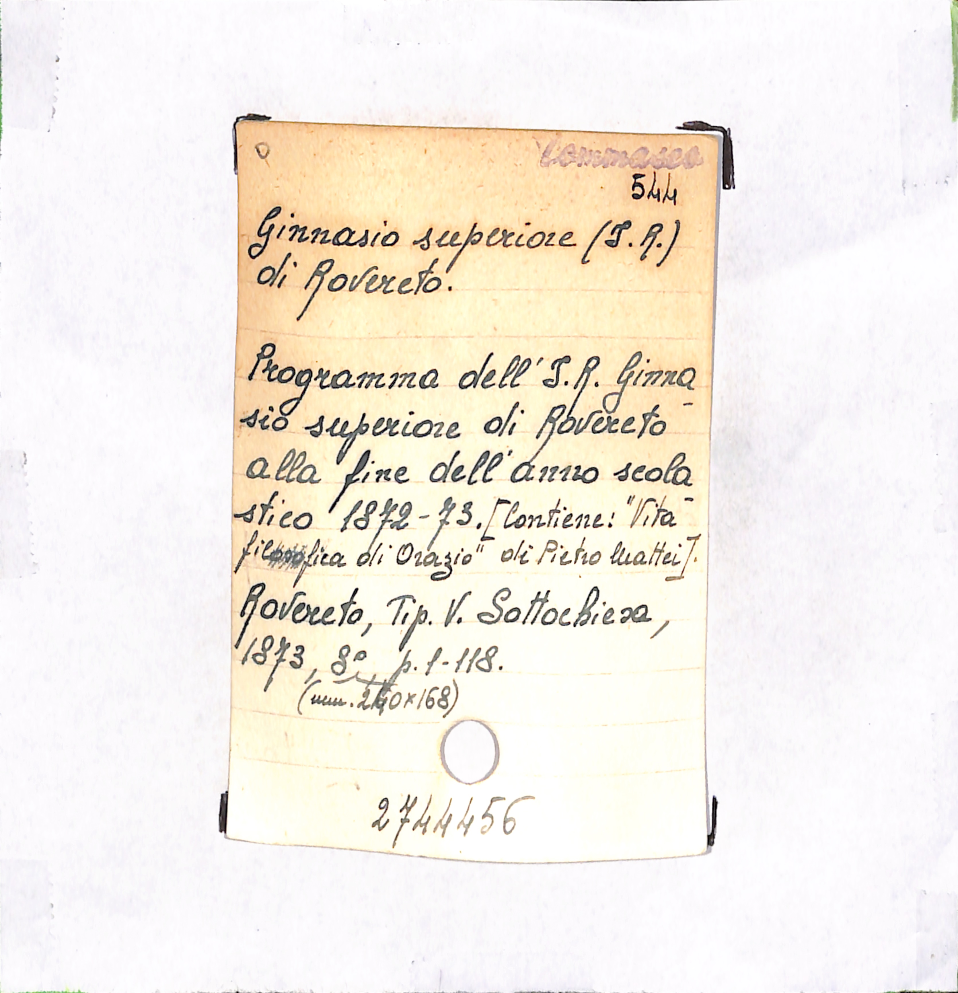 • Programma dell'I.R. Ginnasio superiore di Rovereto alla fine dell'anno scolastico 1872-73
