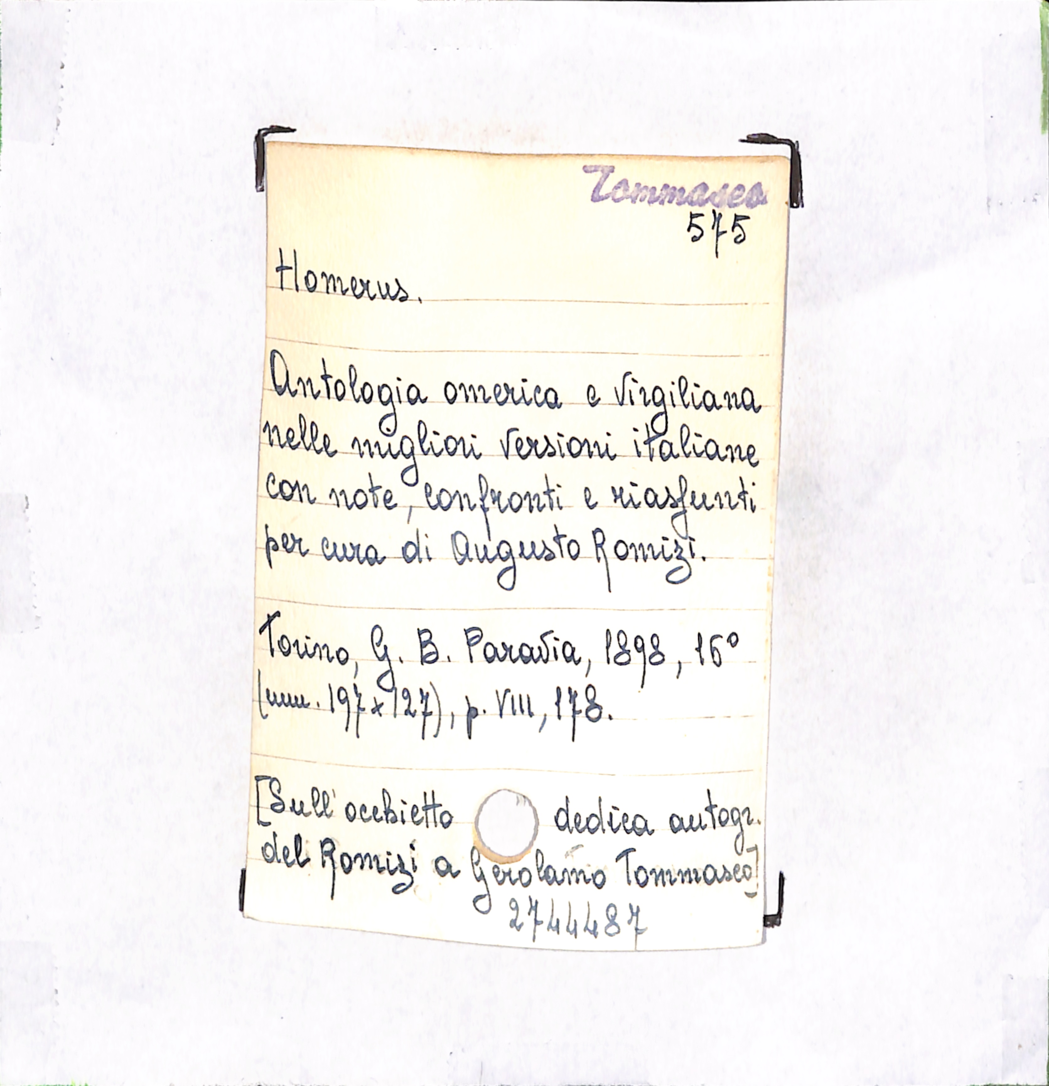 • Antologia omerica e virgiliana nelle migliori versioni italiane con note, confronti e riassunti per cura di Augusto Romizi