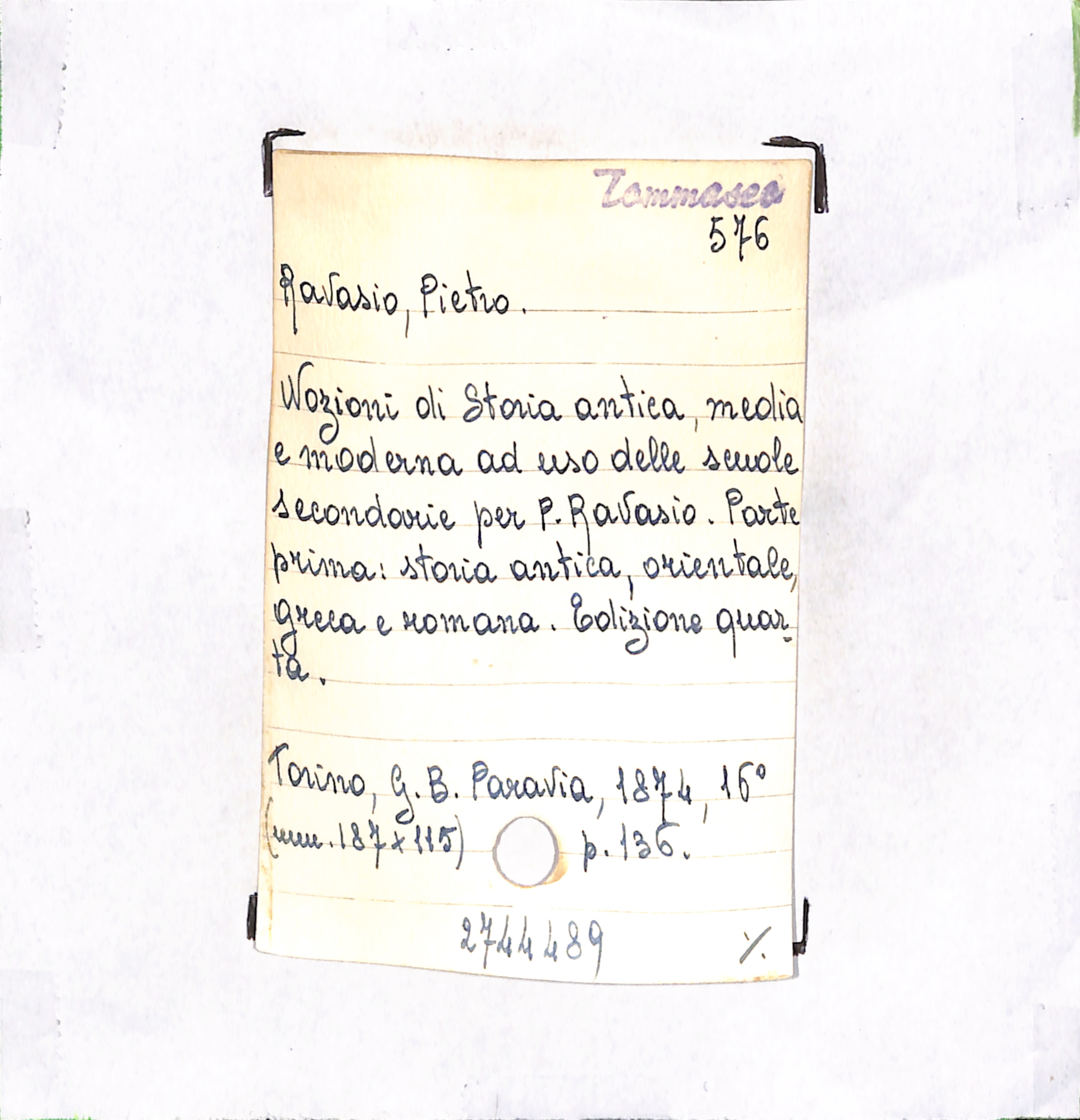 U.D. monografia Nozioni di storia antica, media e moderna ad uso delle scuole secondarie per P. Ravasio