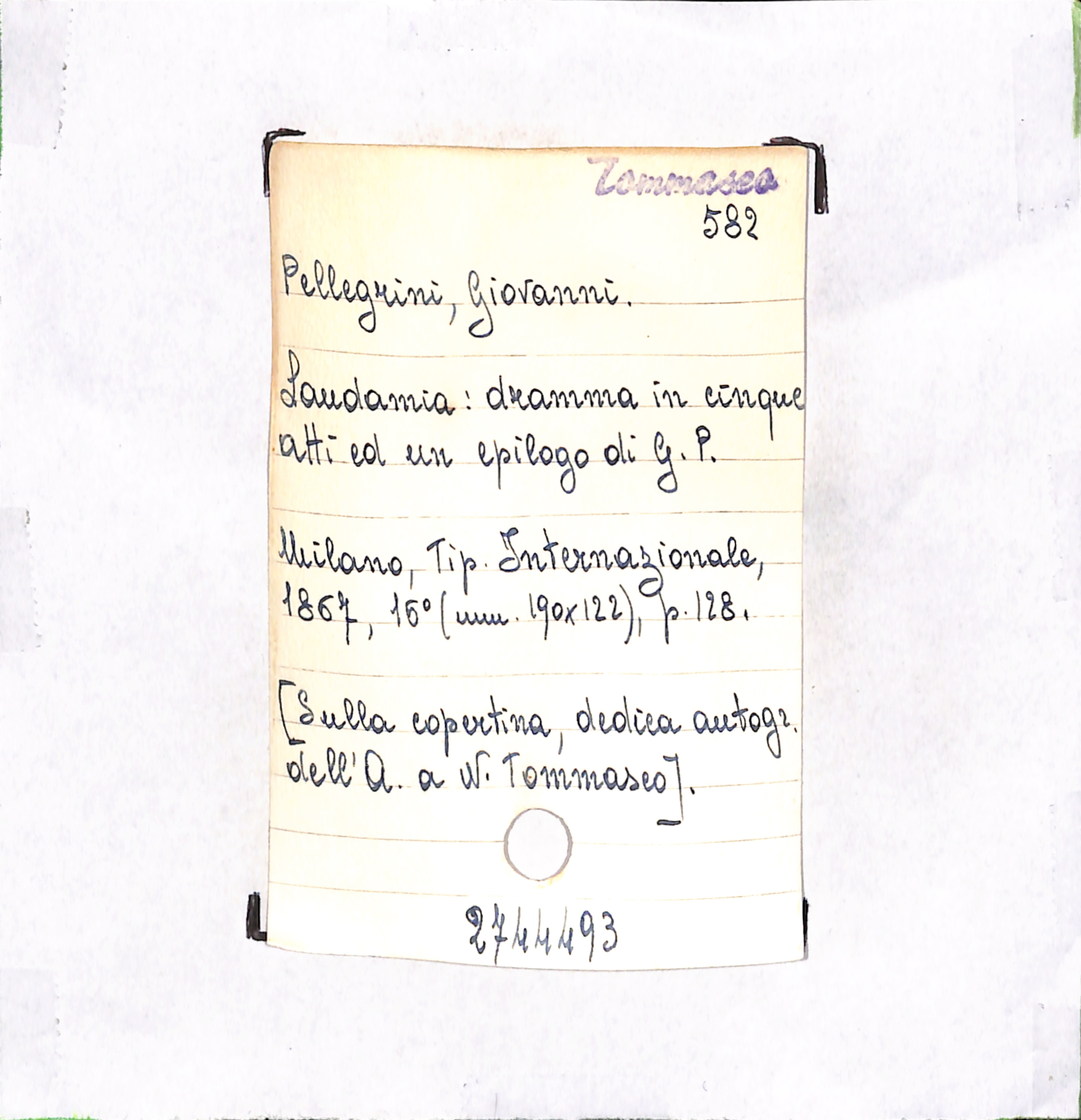 • [Sulla copertina, dedica autogr. dell'A. a N. Tommaseo].