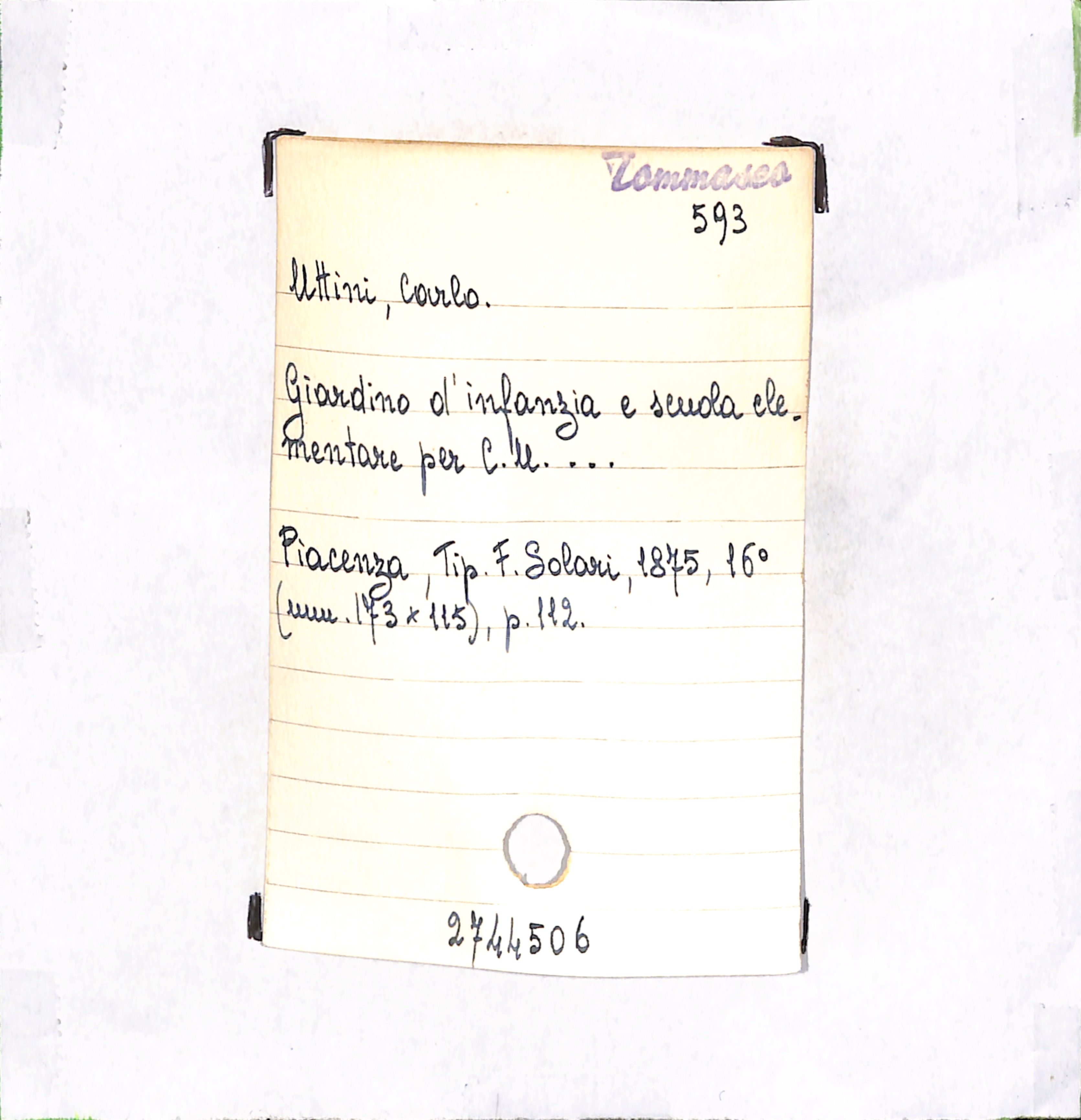 U.D. monografia Giardino d'infanzia e scuola elementare per C. U. …