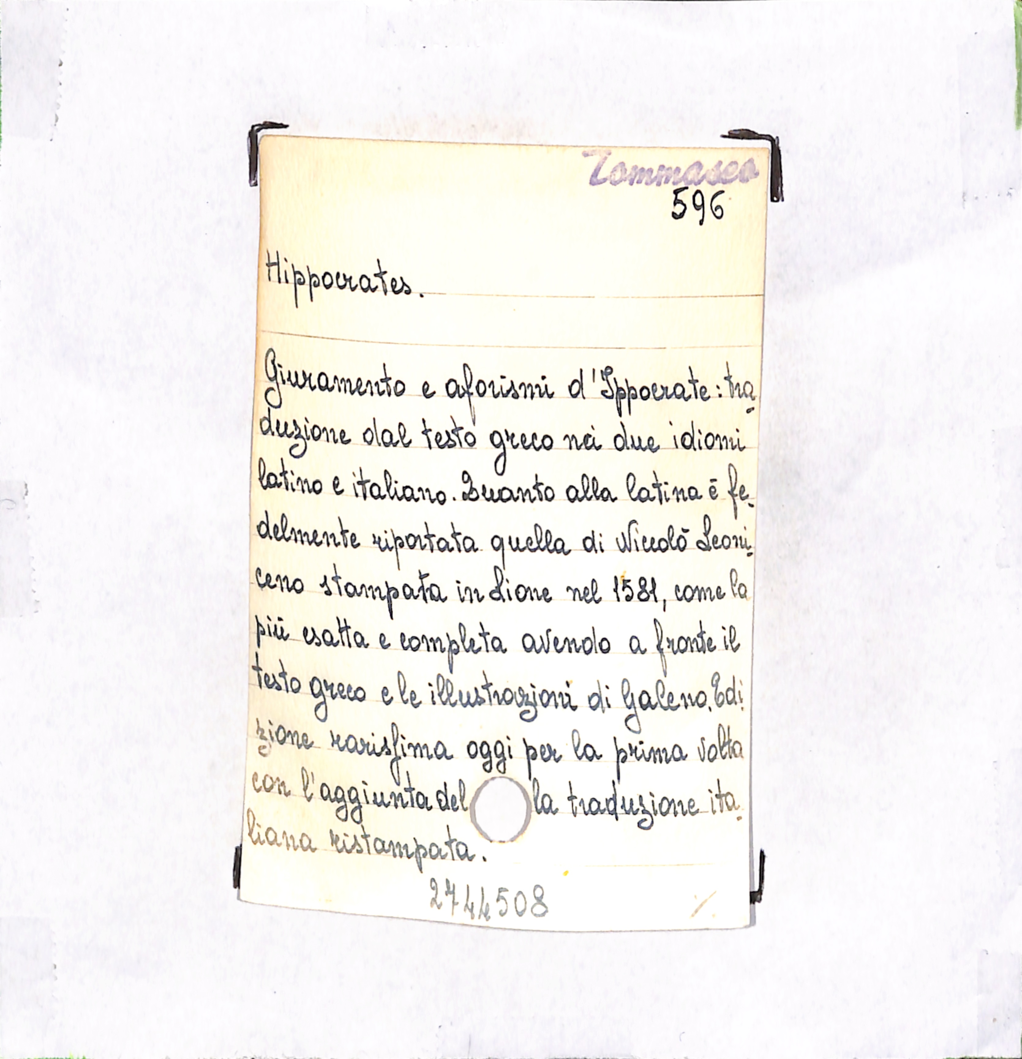U.D. monografia Giuramento e aforismi d'Ippocrate: trudizione dal testo greco nei due idiomi latino e italiano