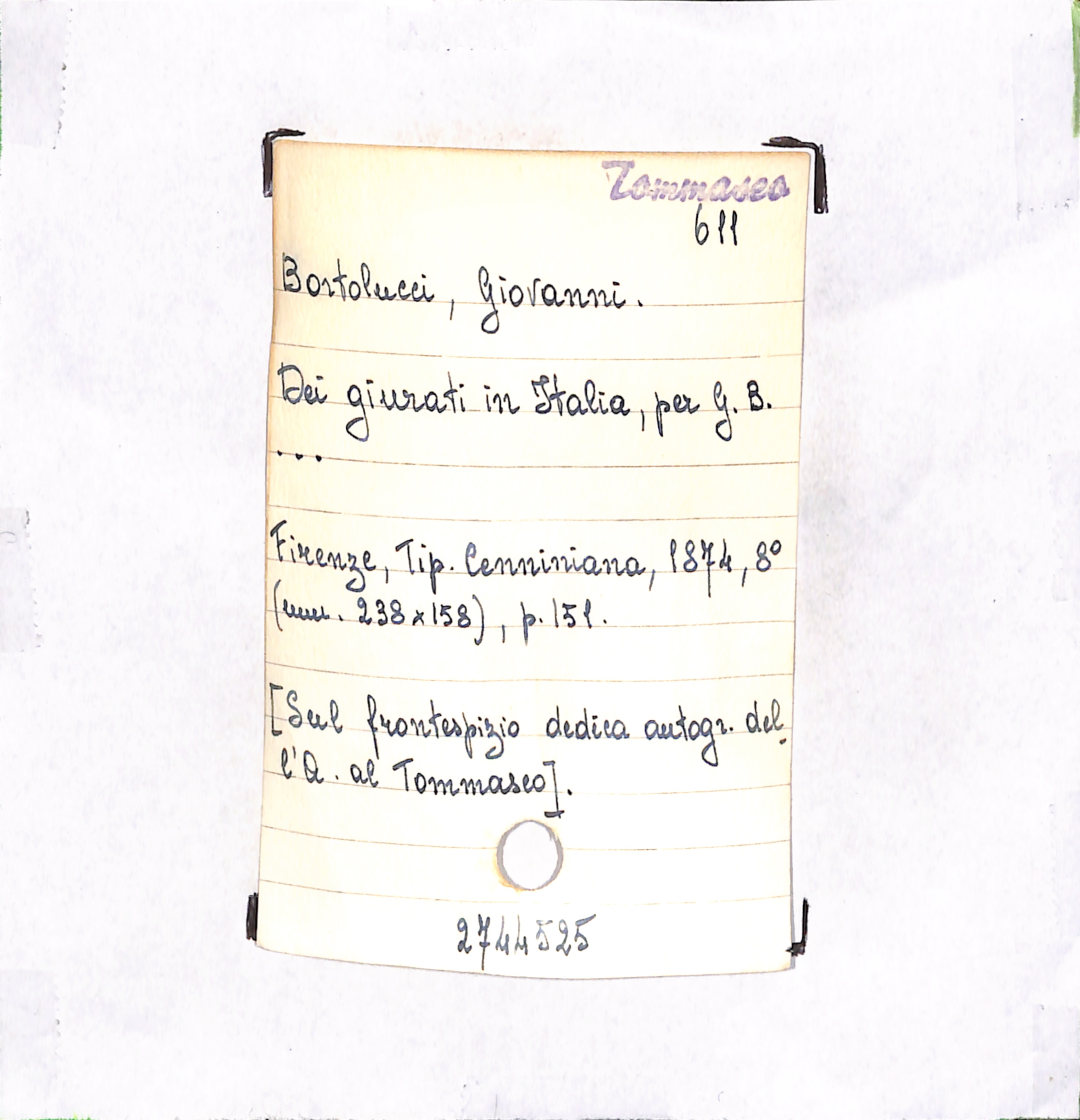• [Sul frontespizio dedica autogr. dell'A. al Tommaseo].