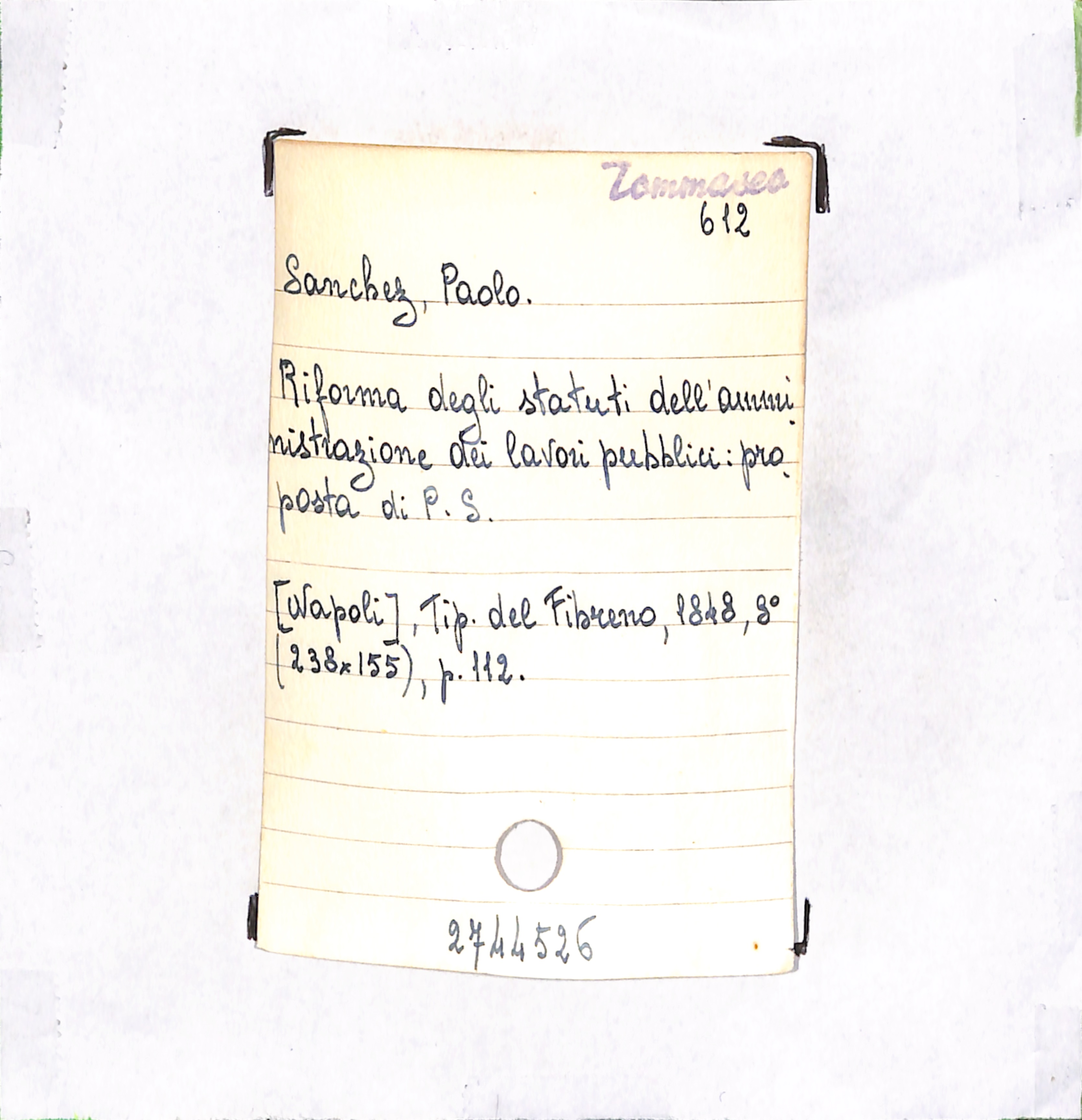 U.D. monografia Riforma degli statuti dell'amministrazione dei lavori pubblici: proposta di P. S.
