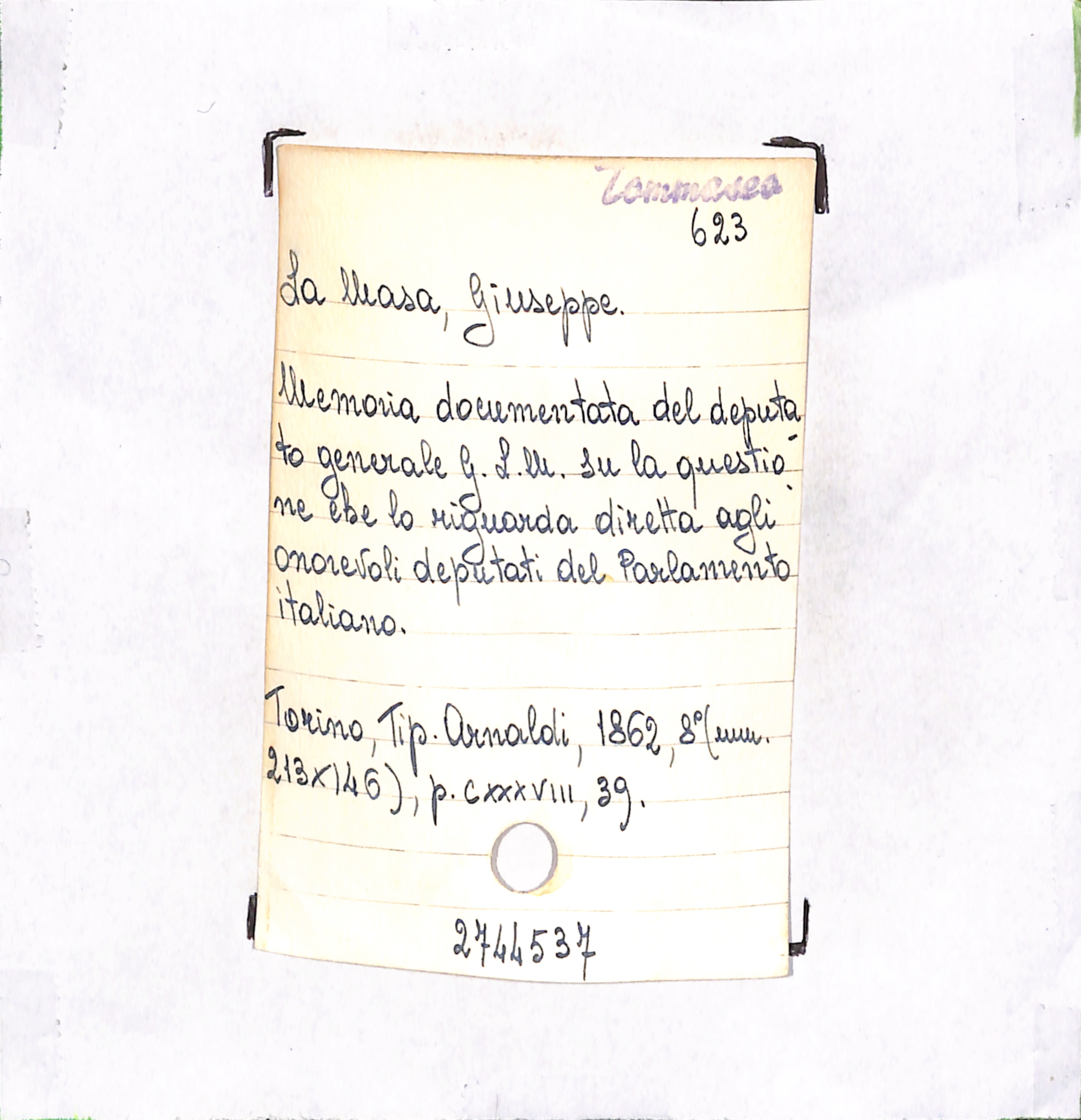 U.D. monografia Memoria documentata del deputato generale G. L. M. su la questione che lo riguarda diretta agli onorevoli deputati del Parlamento italiano
