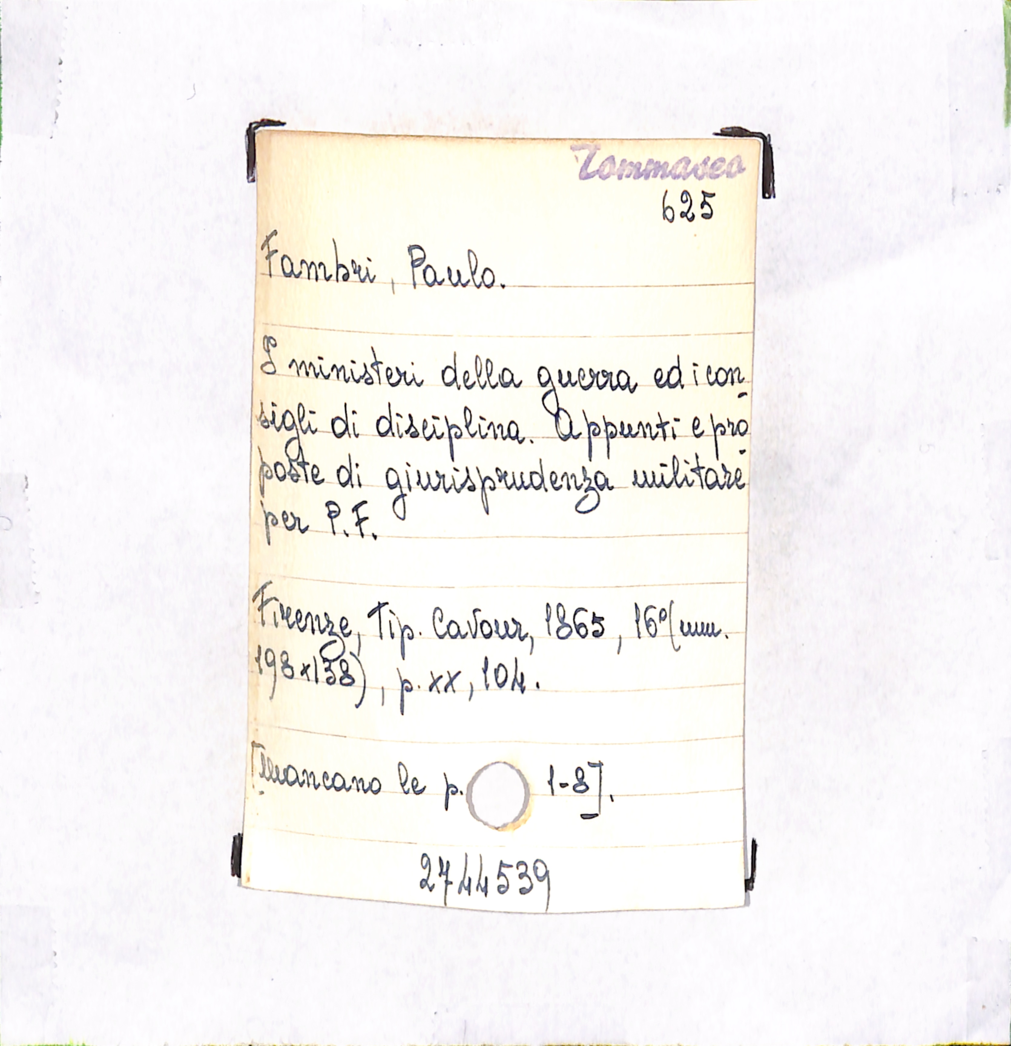 U.D. monografia I ministeri della guerra ed i consigli di disciplina