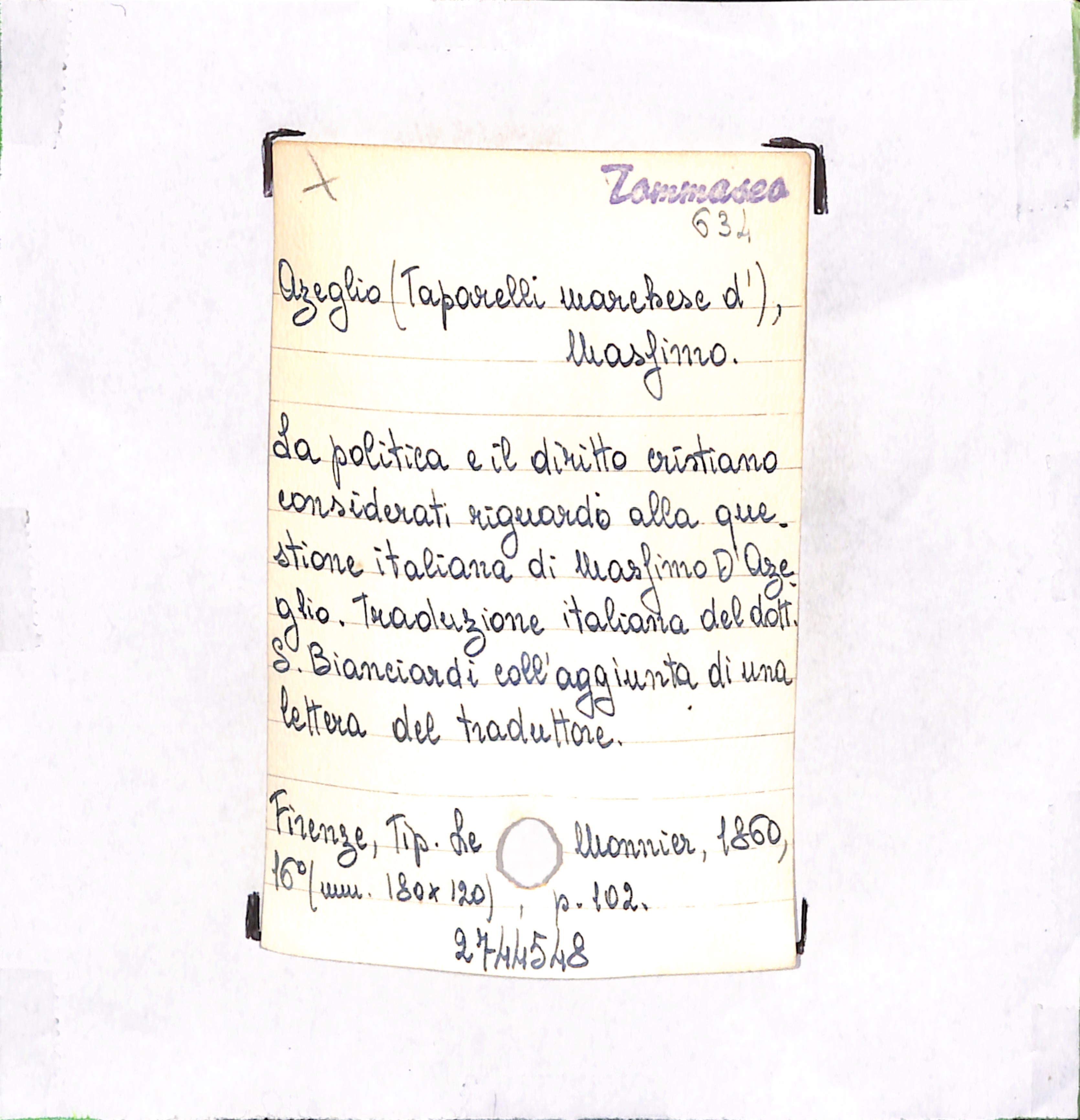 U.D. monografia La politica e il diritto cristiano considerati riguardo alla questione italiana di Massimo D'Azeglio