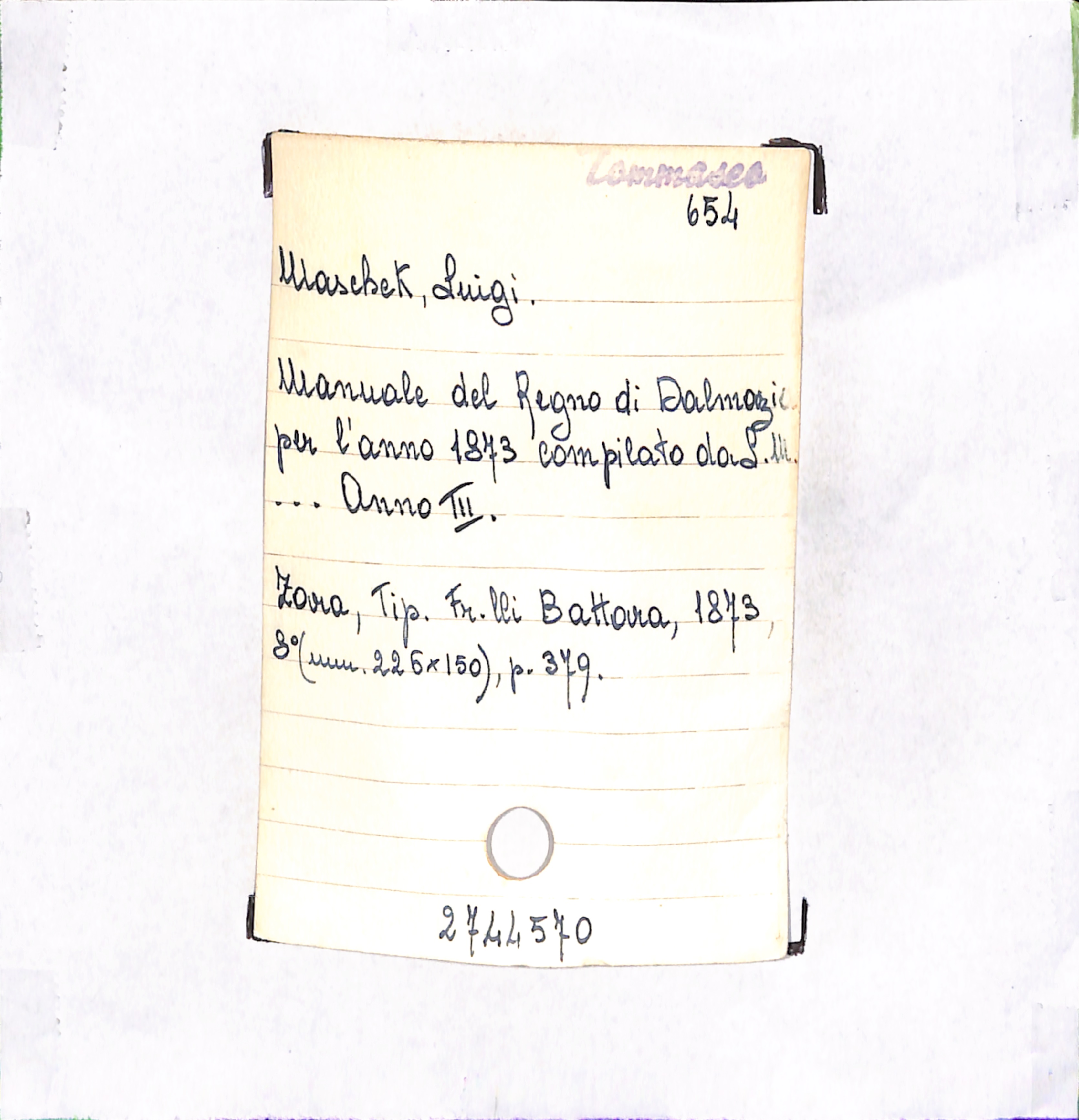 U.D. monografia Manuale del Regno di Dalmazia per l'anno 1873 compilato da L. M. …