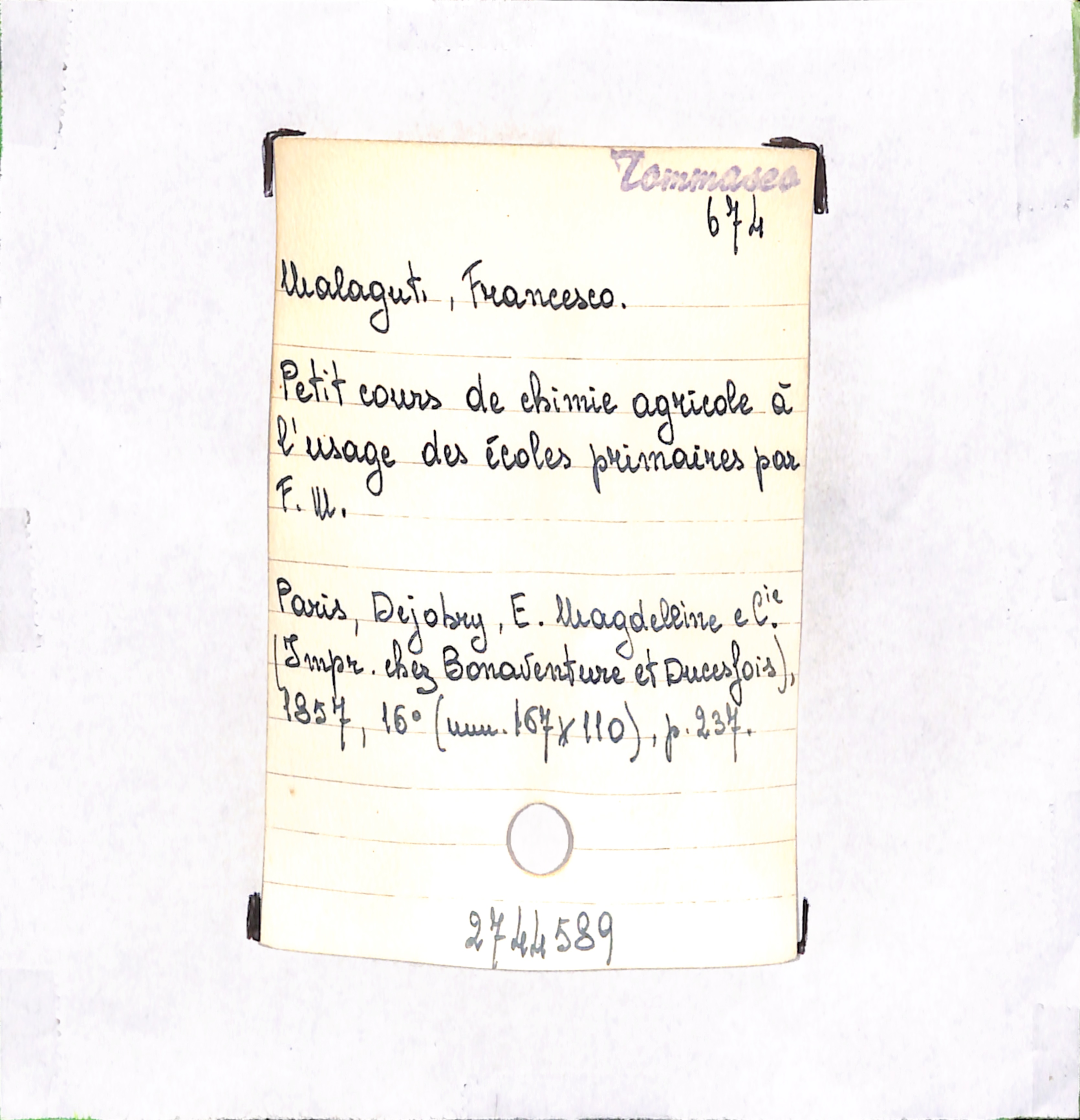 U.D. monografia Petit cours de chimie agricole à l'usage des écoles primaires par F. M.