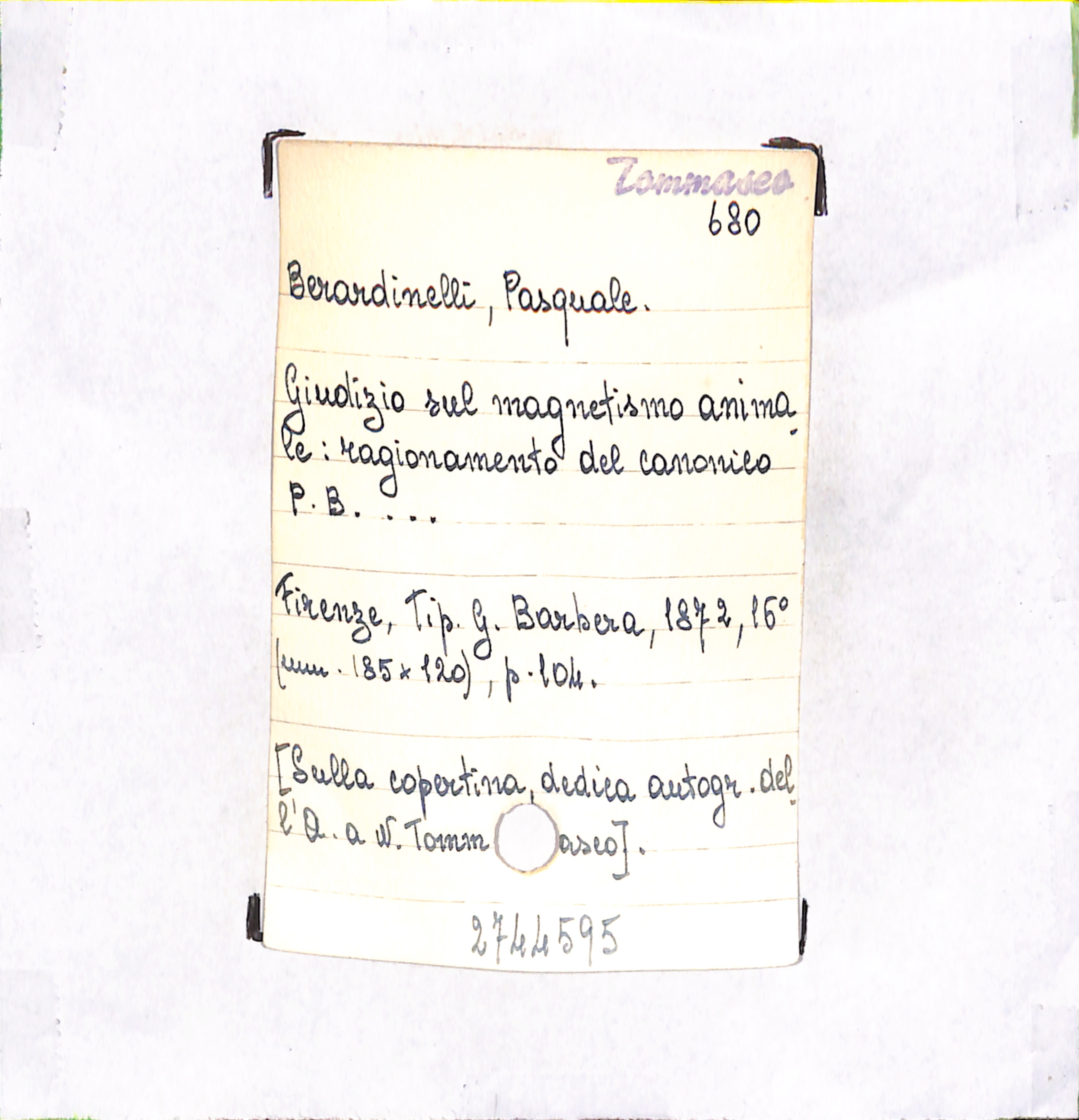 U.D. monografia Giudizio sul magnetismo animale: ragionamento del canonico P. B. …