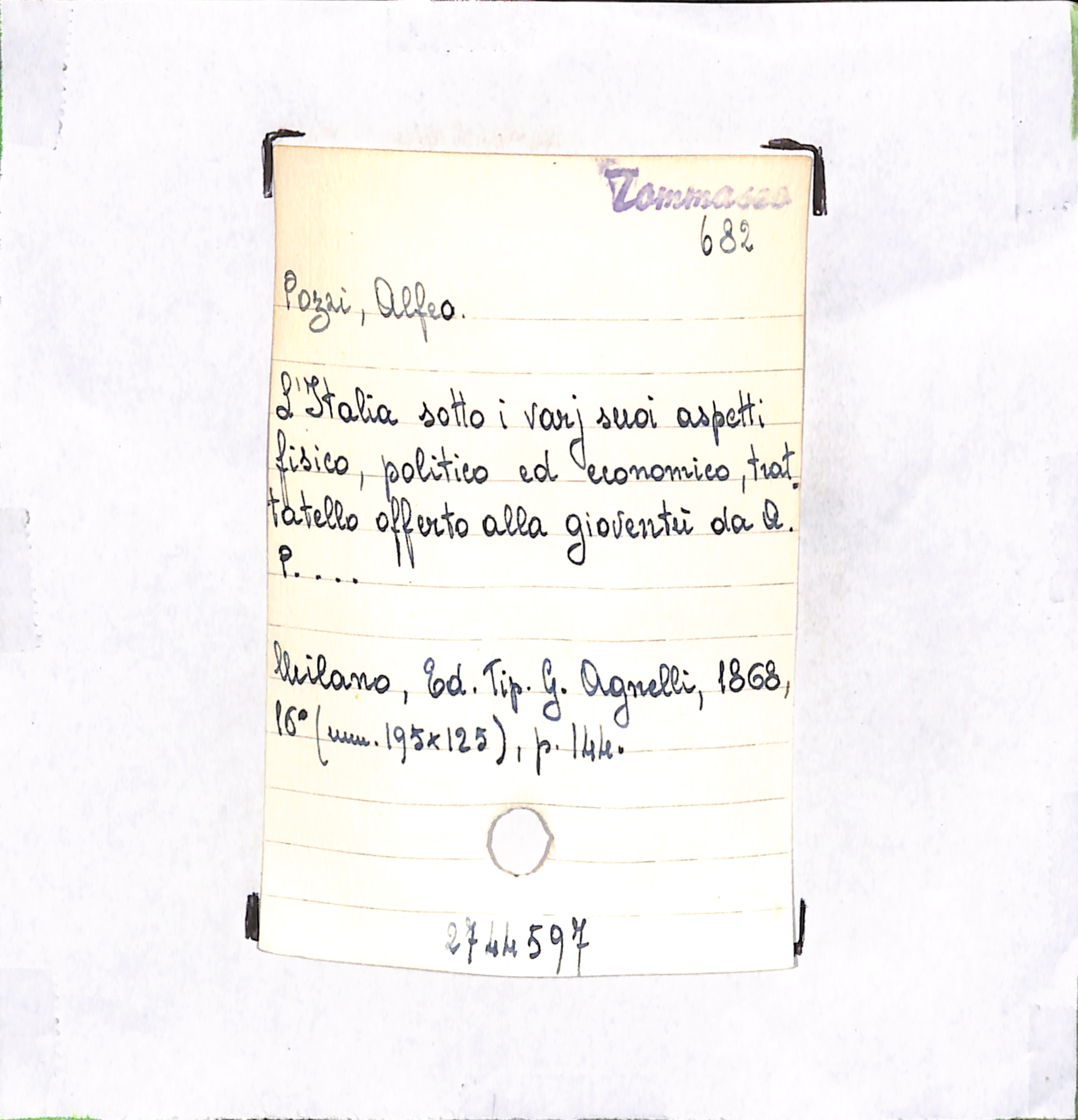 U.D. monografia L'Italia sotto i varj suoi aspetti fisico, politico ed economico, trattatello offerto alla gioventù da A. P. …