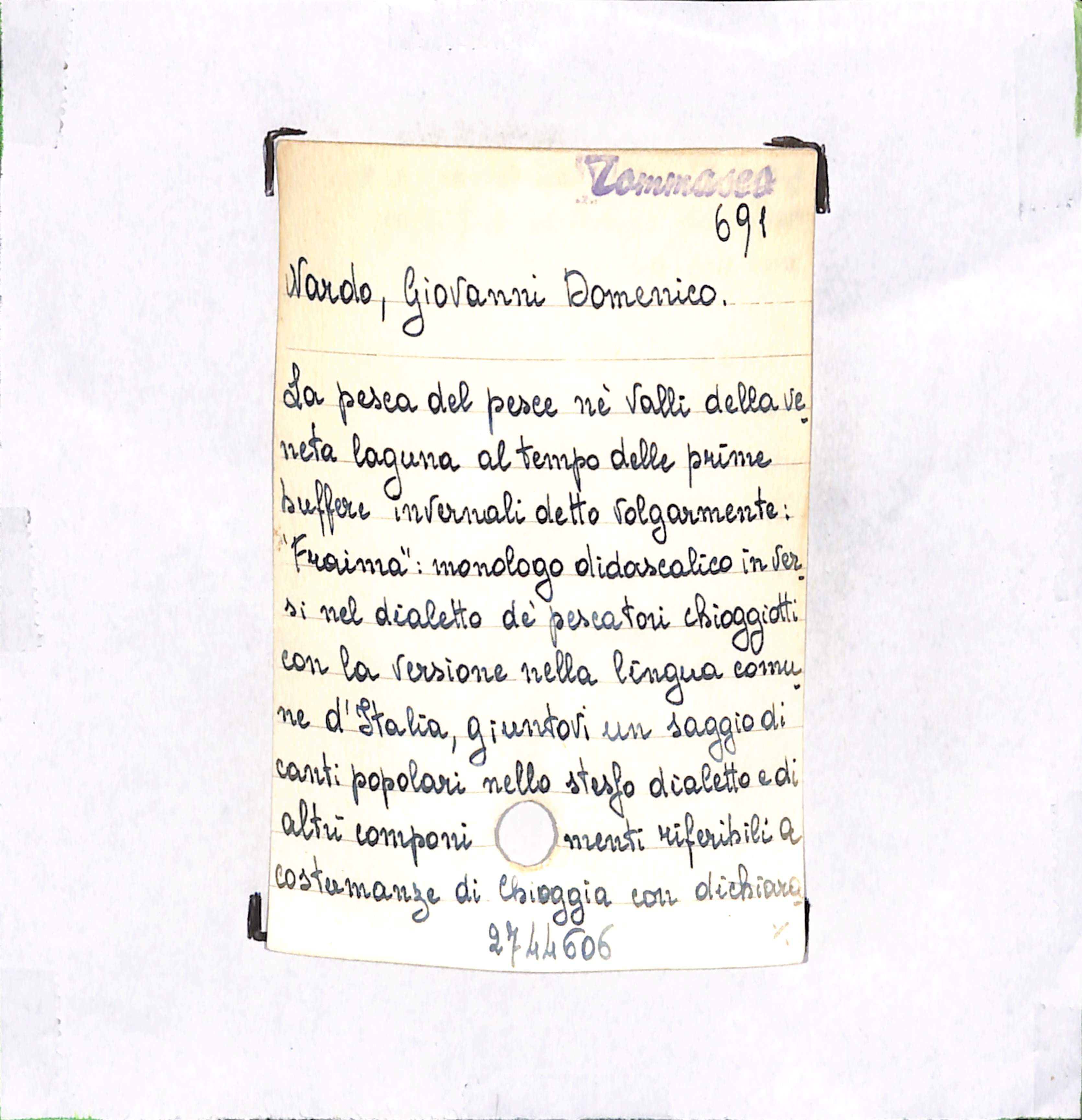 U.D. monografia La pesca del pesce ne' valli della veneta laguna al tempo delle prime buffere invernali detto volgarmente: "Fraima": monologo didascalico in versi nel dialetto de' pescatori chioggiotti con la versione nella lingua comune d'Italia, giuntovi un saggio di c