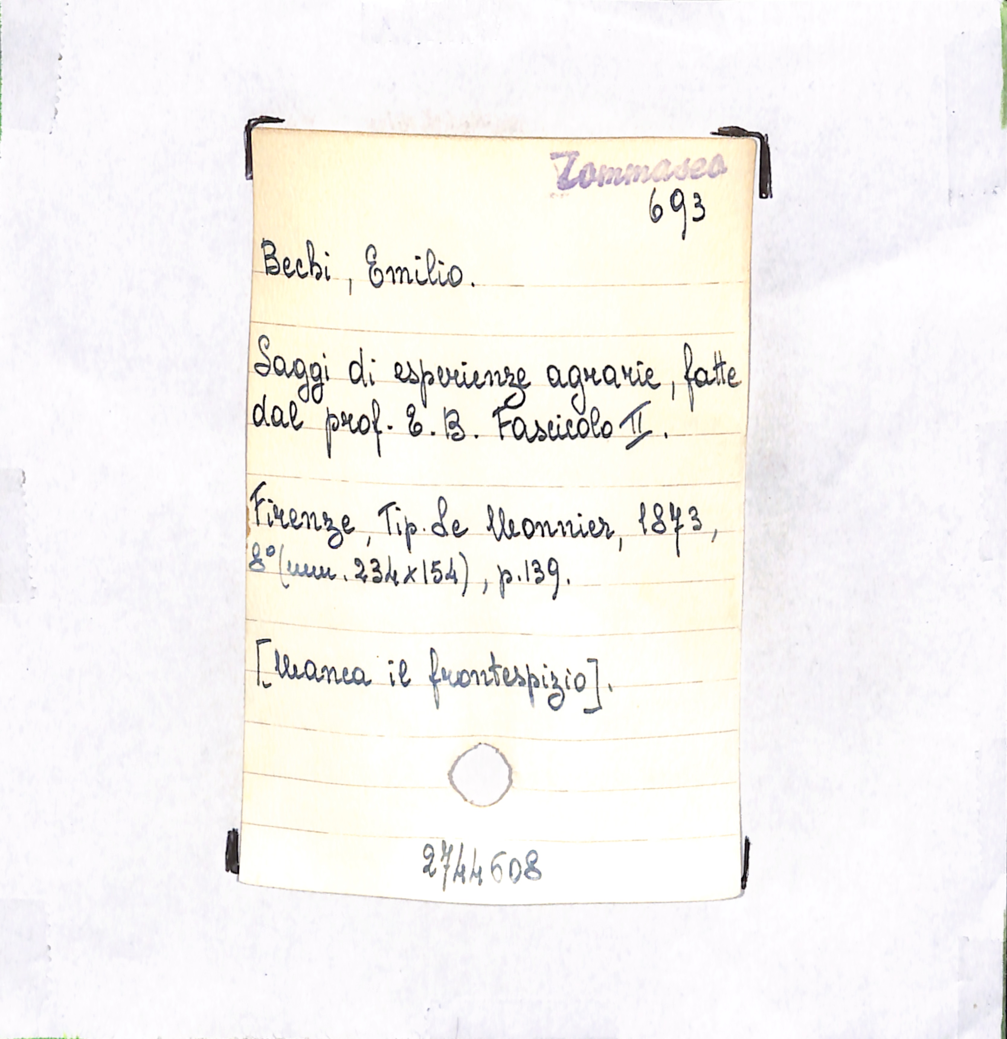 U.D. monografia Saggi di esperienze agrarie, fatte dal prof. E. B.