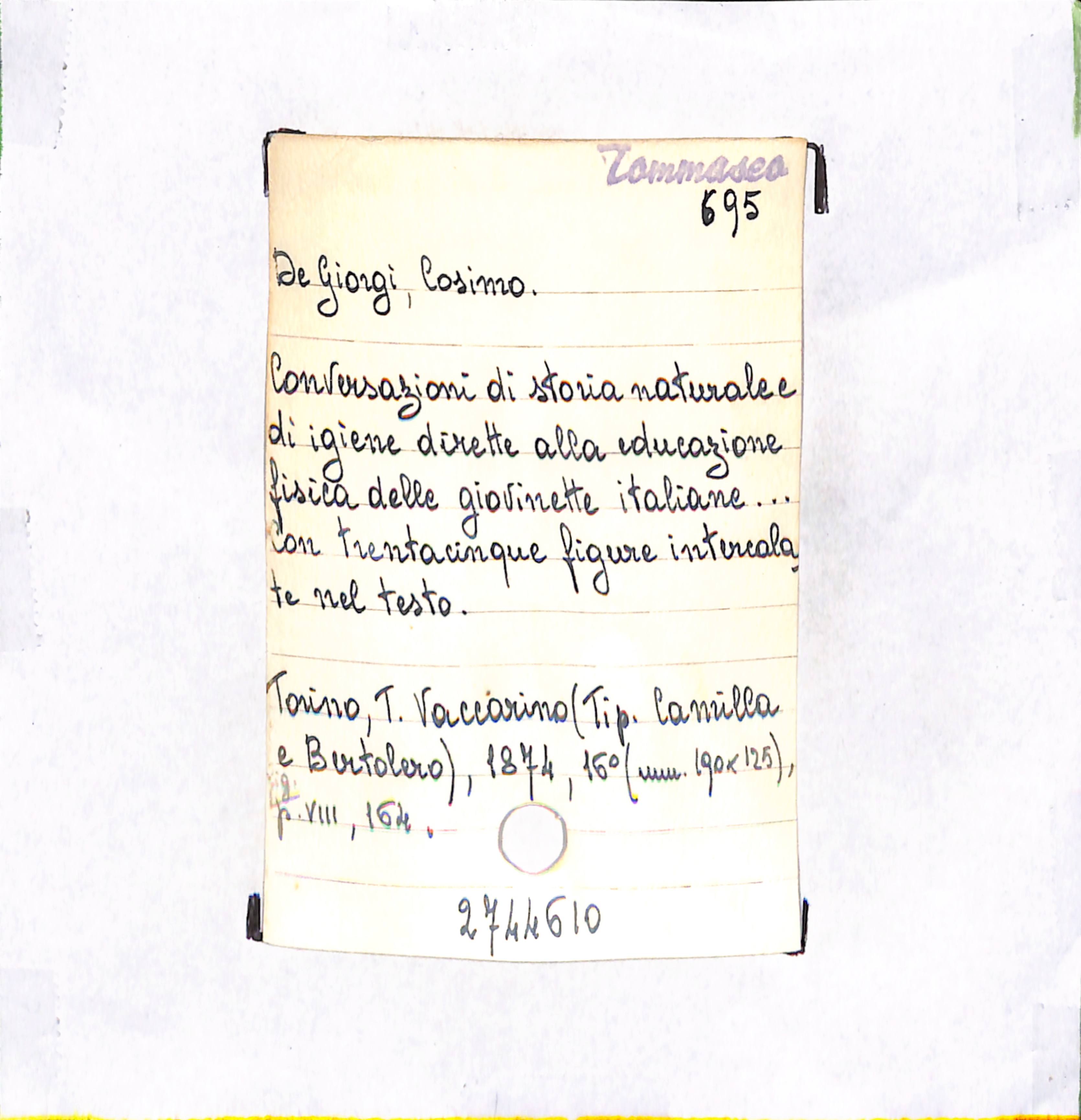 U.D. monografia Conversazioni di storia naturale e di igiene dirette alla educazione fisica delle giovinette italiane…