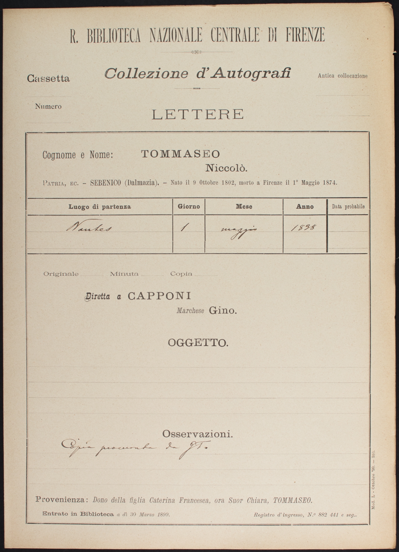 Sottofascicolo N. Tommaseo a G. Capponi - 1 maggio 1838