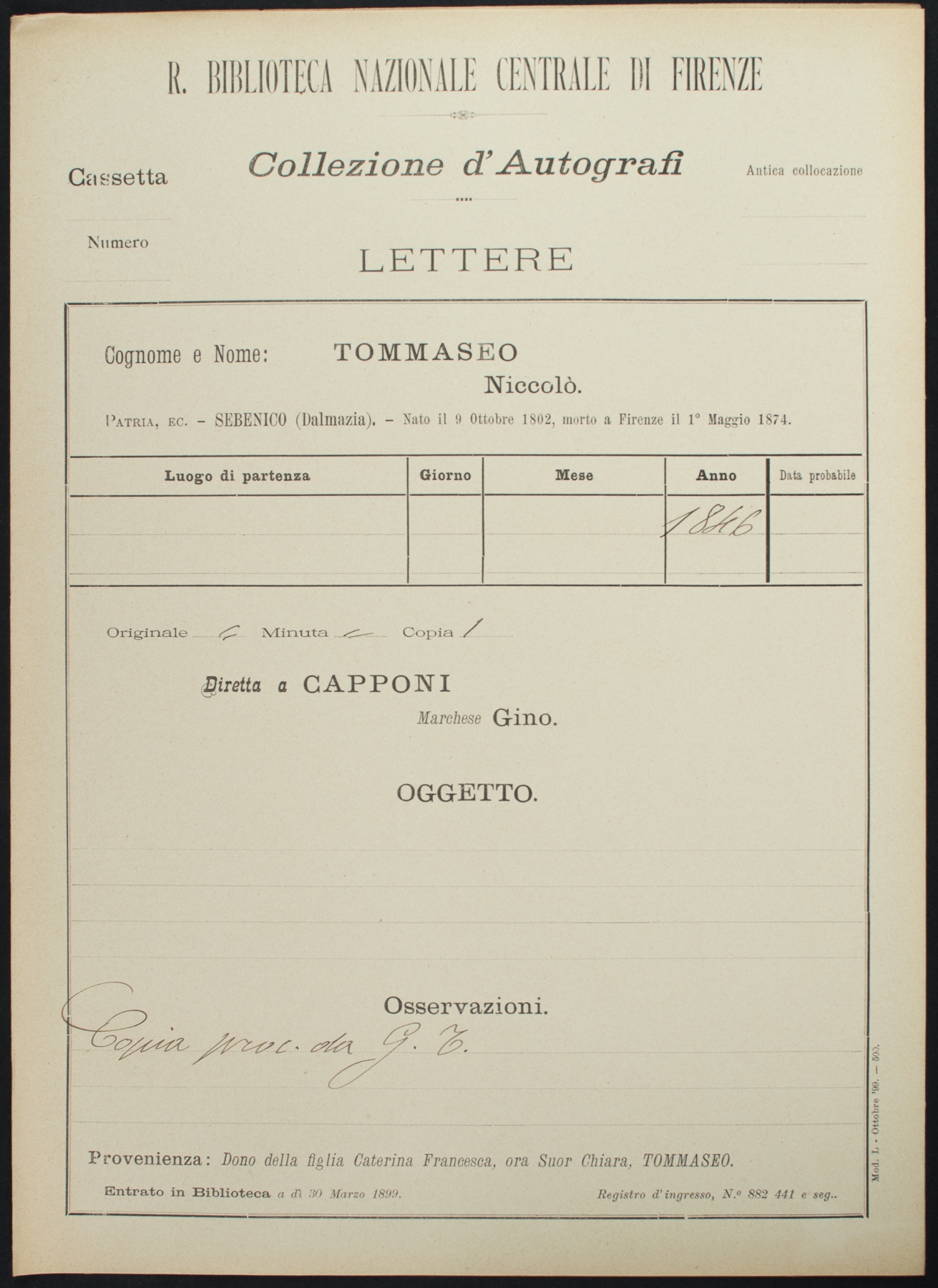 Sottofascicolo N. Tommaseo a G. Capponi - (…) 1846