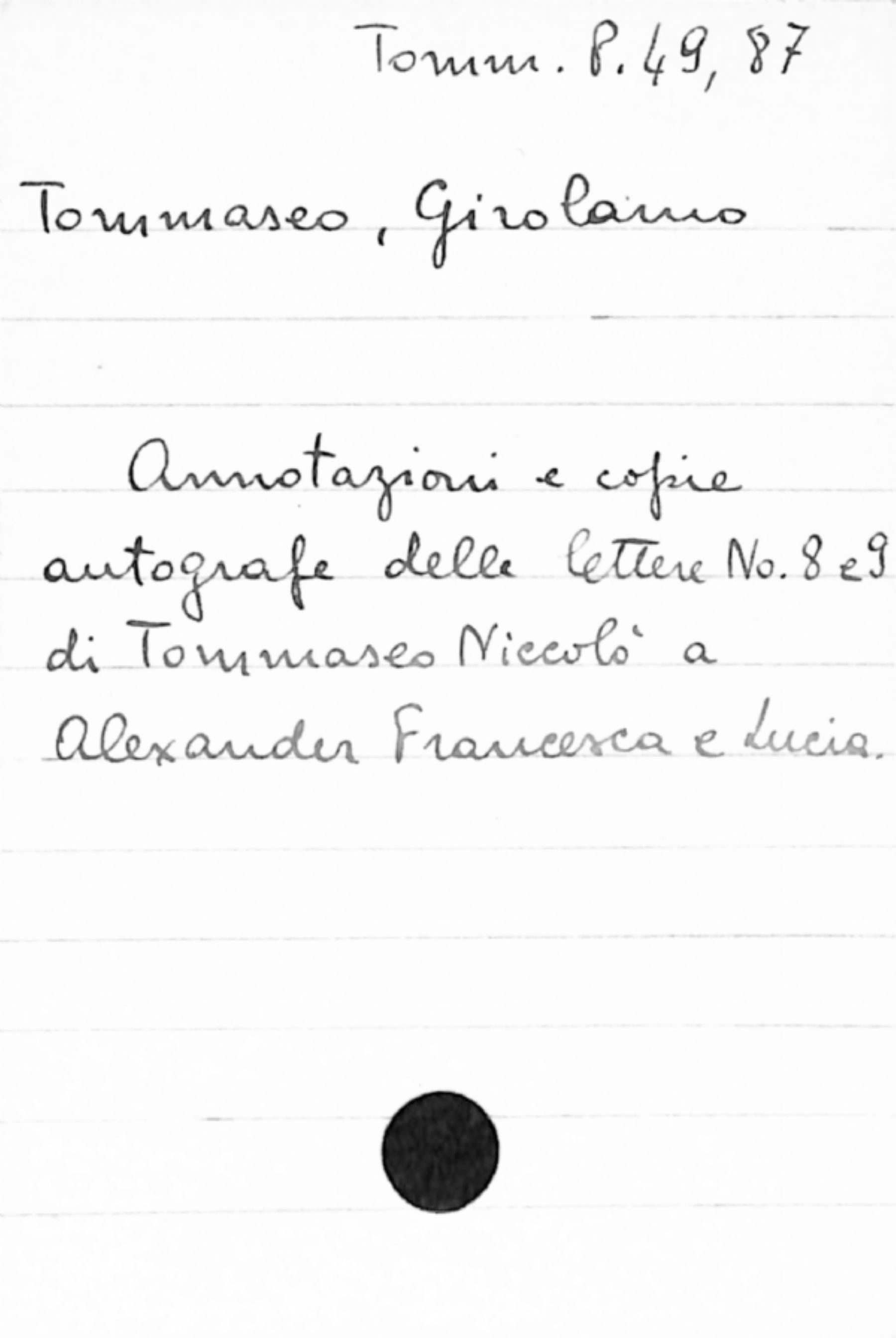 Fascicolo Tommaseo, Niccolò a Alexander Francesca; Alexander Lucia; Alexander Francesco