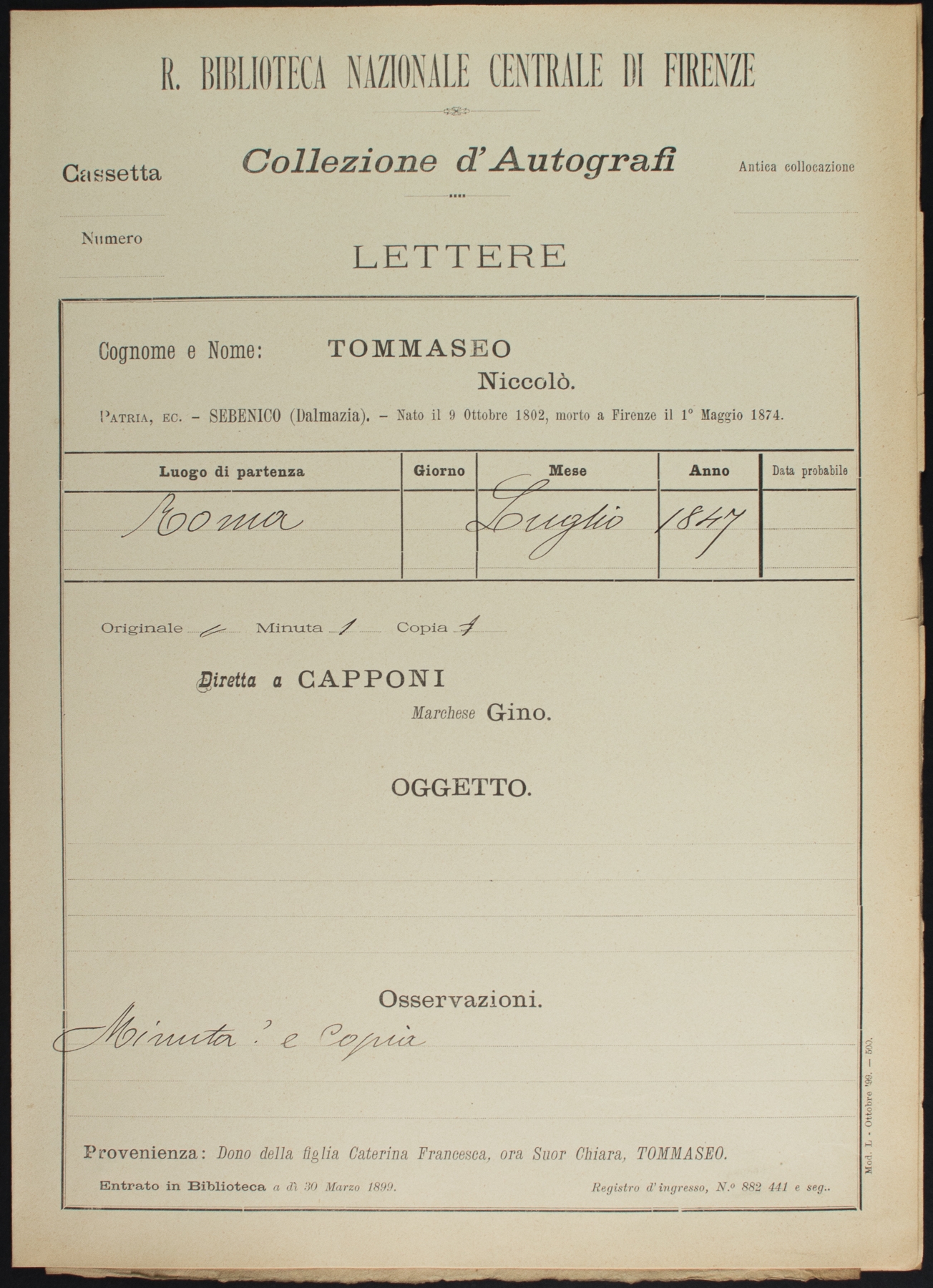 • Fondo Tommaseo presso Biblioteca Nazionale Centrale di Firenze (BNCF)