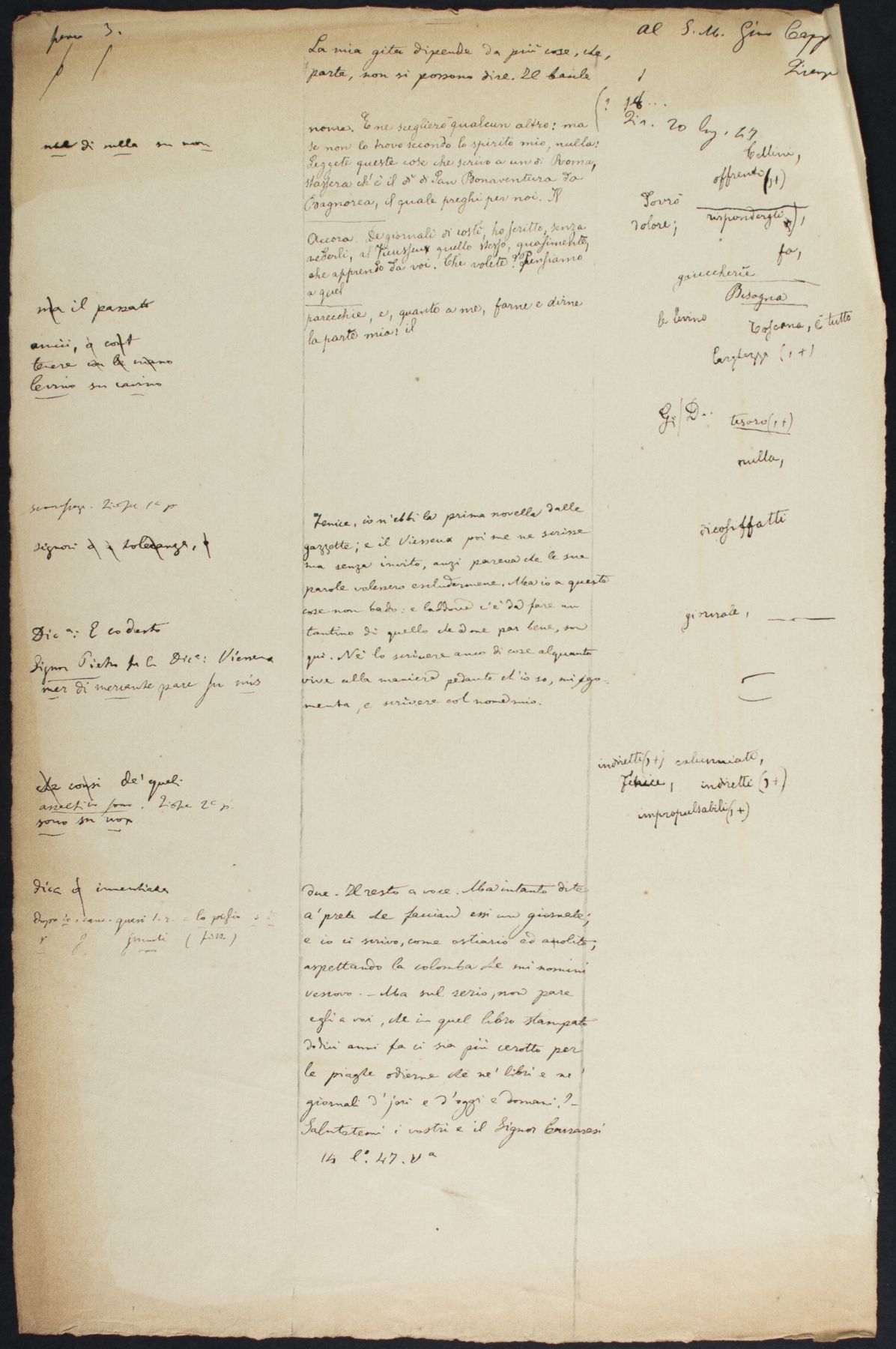 7. Sottofascicolo N. Tommaseo a G. Capponi - luglio 1847